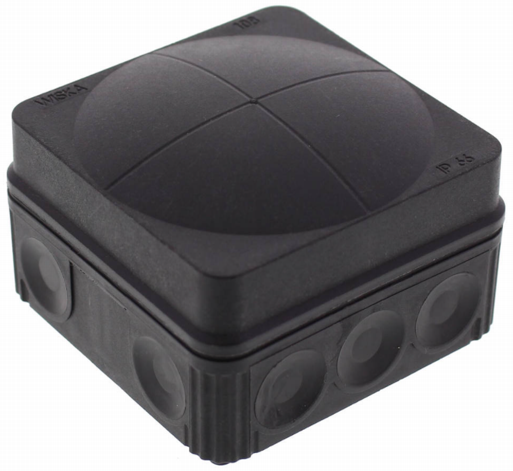 White Junction Boxes with membrane grommets, holding brackets and metric threads. Quick release cover screws.