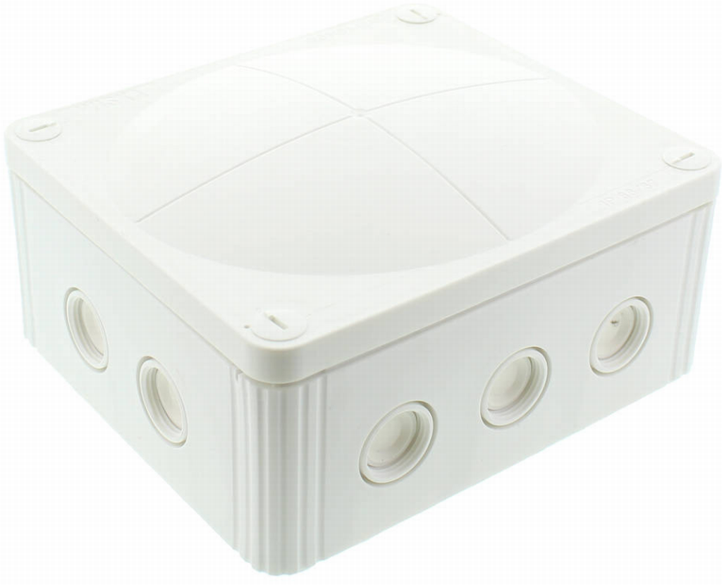 White Junction Boxes with membrane grommets, holding brackets and metric threads. Quick release cover screws.